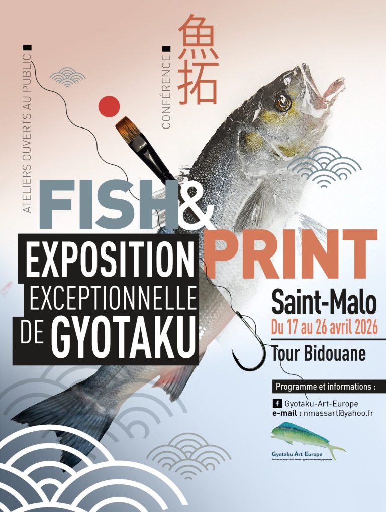 Le Gyotaku, art de l’empreinte de poisson, est une tradition des pêcheurs japonais datant du 19ème siècle. Le poisson était recouvert d’encre de chine puis un papier était appliqué dessus pour prendre son empreinte. Sous l’impulsion de quelques artistes japonais dont Maître Matsunaga, cette pratique a donné naissance au gyotaku artistique dès le milieu du 20ème siècle.